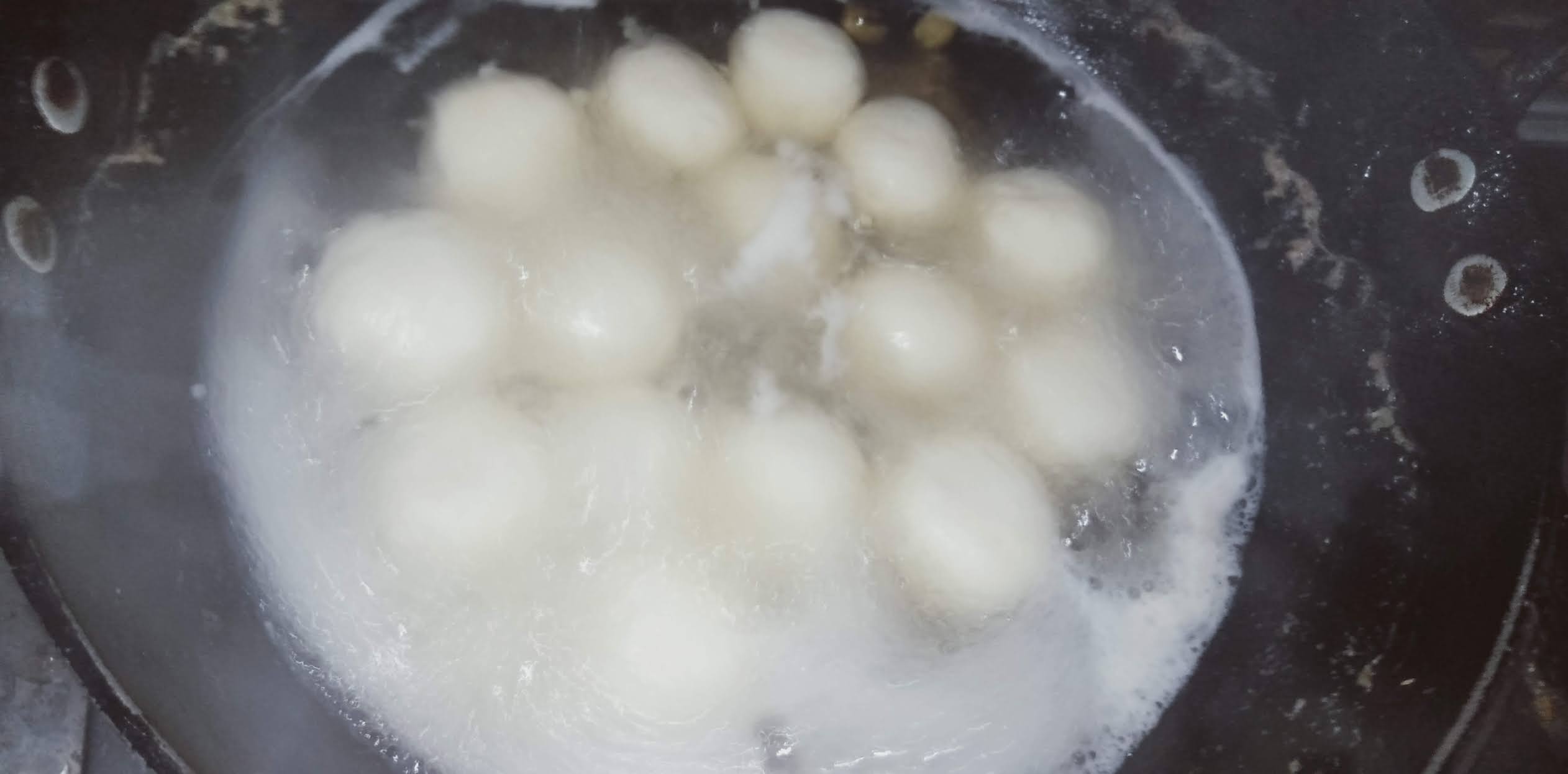 Add chenna balls into sugar syrup when sugar syrup is boiling.